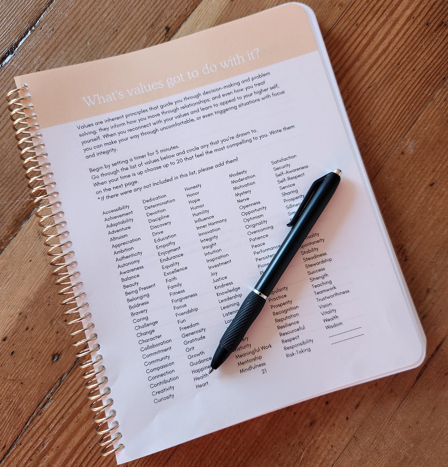 As a divorce coach it’s an important piece of creating a plan with my clients. Using a long list of potential values we pare away until we come up with three or four that are most resonant. Identifying these core values allows you a focused and succinct way to connect with your higher self. So when you’re feeling drawn into the fray you can access a few simple words which bring you back to the present moment and the business at hand, instead of spiraling into the past.